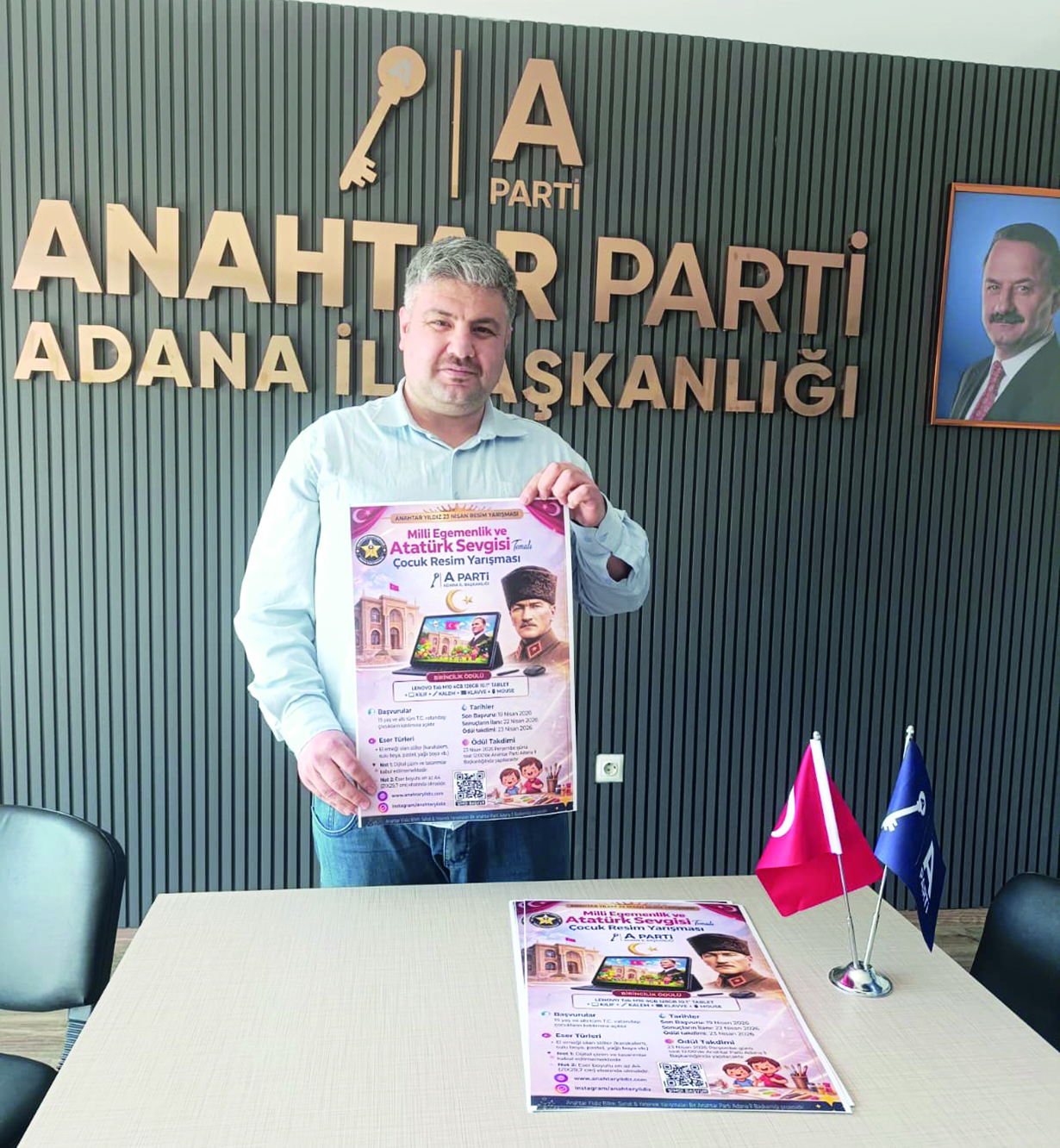 Anahtar Parti Adana AR-GE Başkanı Ömer Faruk Bostancı tarafından projelendirilen “Anahtar Yıldız” yarışmasının başvuru sürecinde sona gelindi. 23 Nisan temalı resim yarışmasına son başvuru 19 Nisan 2026.