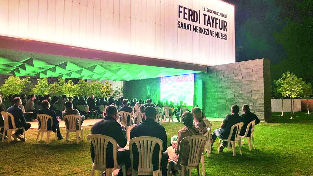Sarıçam’da futbol severler, Beşiktaş – Fenerbahçe arasında oynanan derbi heyecanını Ferdi Tayfur Sanat Merkezi ve Müzesi içerisinde yer alan Emmioğlu Yazlık sinemasına kurulan dev ekranda ücretsiz yaşadı.